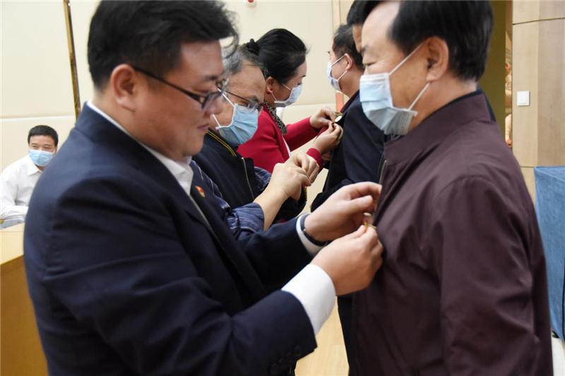 三位基建工程兵老兵的分享使青年員工們備受鼓舞,現(xiàn)場響起了雷鳴般的掌聲。工勘巖土集團副總經(jīng)理馬君偉、閆京潔及總工辦高級顧問郭清分別為三位老兵送上工勘五四青年節(jié)紀念章。
