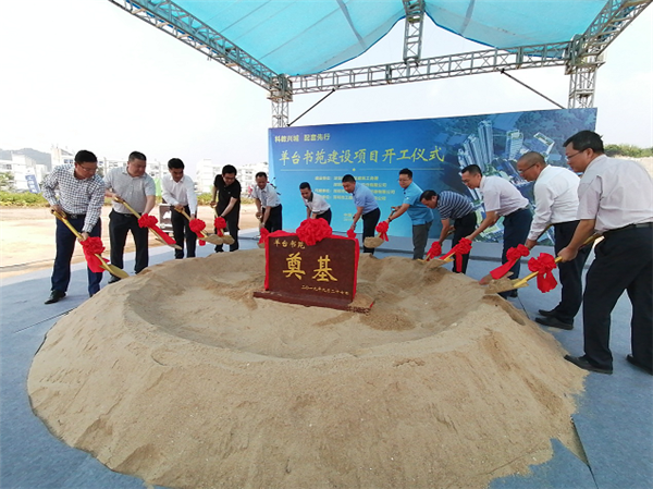 到場的領(lǐng)導(dǎo)、嘉賓一同為“羊臺(tái)書苑”的奠基石揭幕并培上第一鍬土,預(yù)祝項(xiàng)目開工大吉、順順利利。