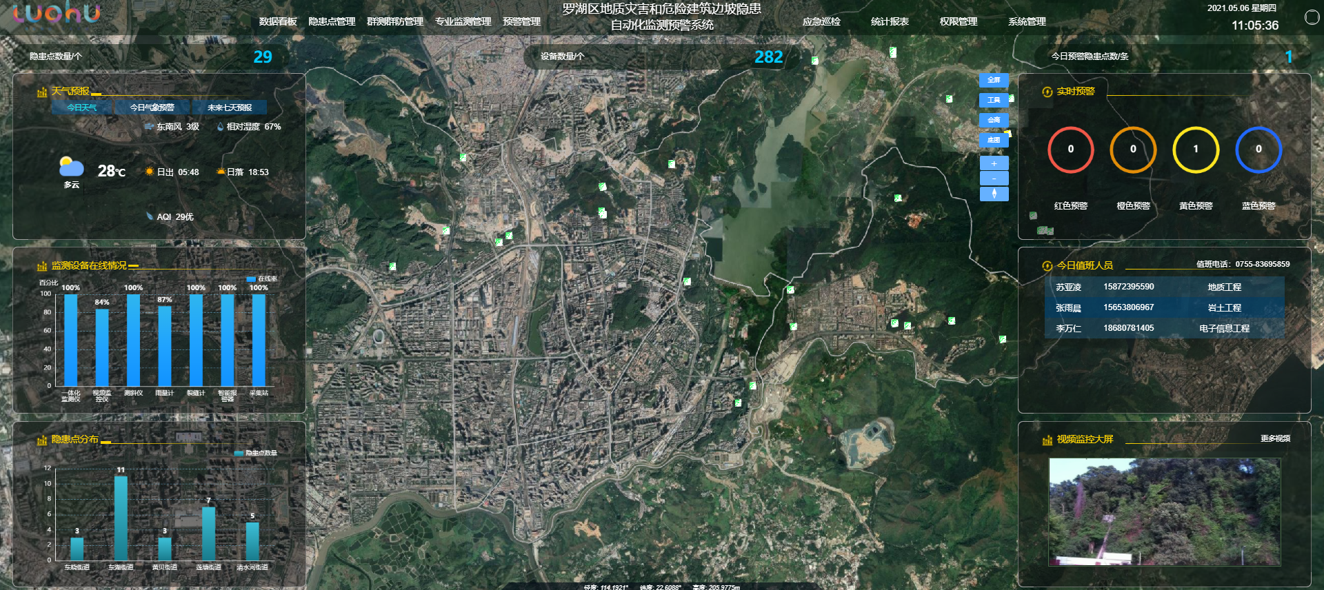 為減少地質(zhì)災(zāi)害和危險(xiǎn)建筑邊坡造成的危害,保障人民生命財(cái)產(chǎn)安全,全面遵循習(xí)近平總書(shū)記關(guān)于應(yīng)急管理“兩個(gè)堅(jiān)持”“三個(gè)轉(zhuǎn)變”的指示,堅(jiān)持以防為主,注重災(zāi)前預(yù)防,減輕災(zāi)害風(fēng)險(xiǎn),2020年底羅湖應(yīng)急局針對(duì)羅湖區(qū)29處危害程度較高、威脅人數(shù)非常多的重大邊坡隱患點(diǎn)進(jìn)行自動(dòng)化邊坡監(jiān)測(cè)預(yù)警建設(shè)工作。